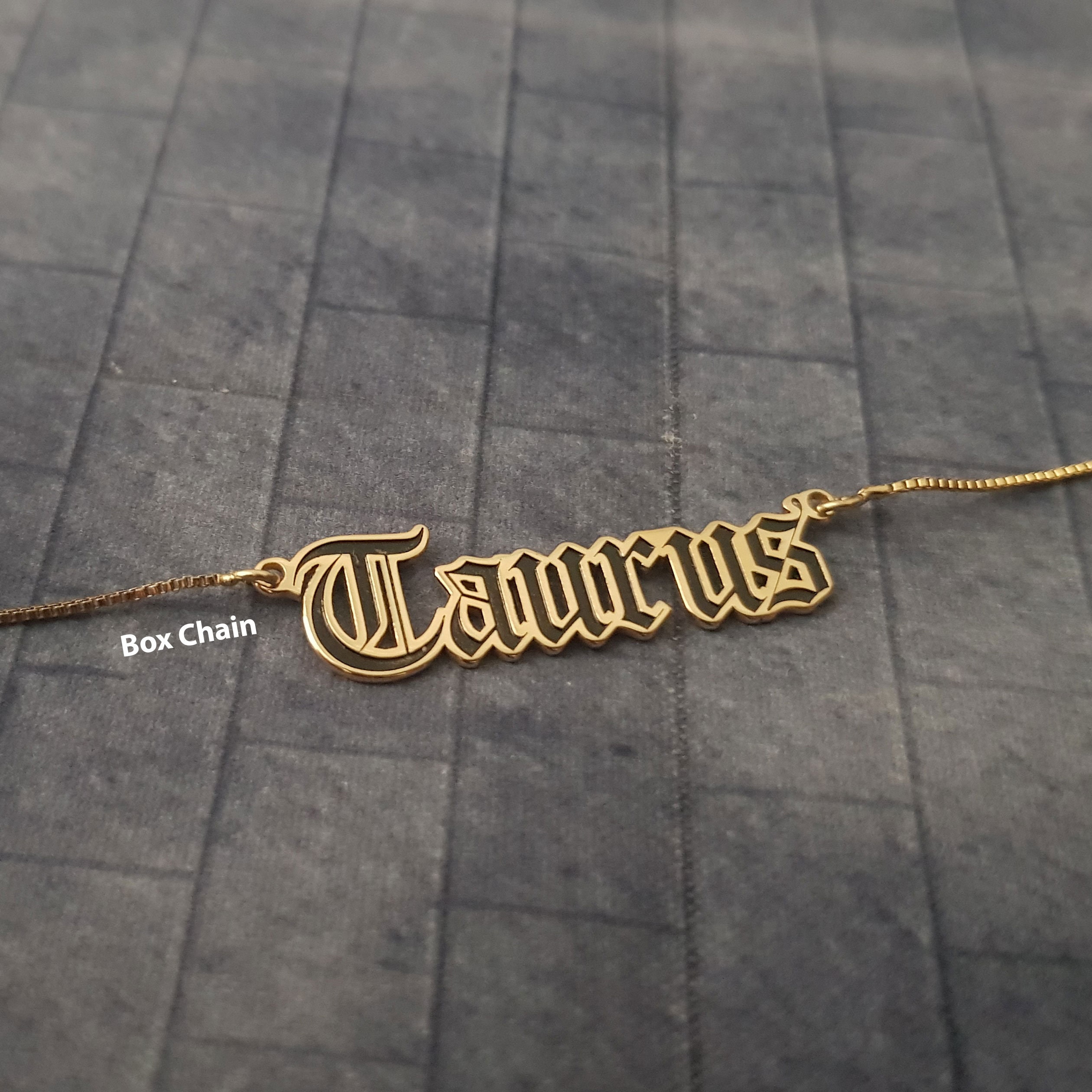 Retro 12 Zodiac Old English Letter Necklace for Women Horoscope Astrology Necklace 14K Gold Plated Mothers Day Birthday Gift Rose gold-Mar.21-Apr.19 ...