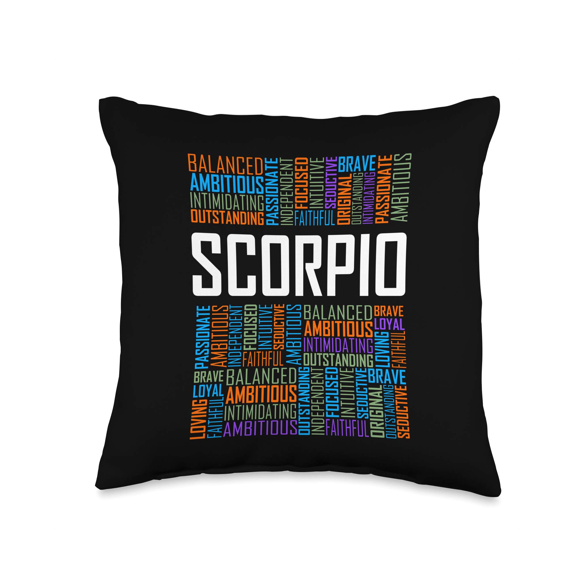 Love Scorpio Characteristics Tees Co Scorpio Zodiac Traits Horoscope Astrology Sign Gift Words Throw Pillow, 16x16, Multicolor