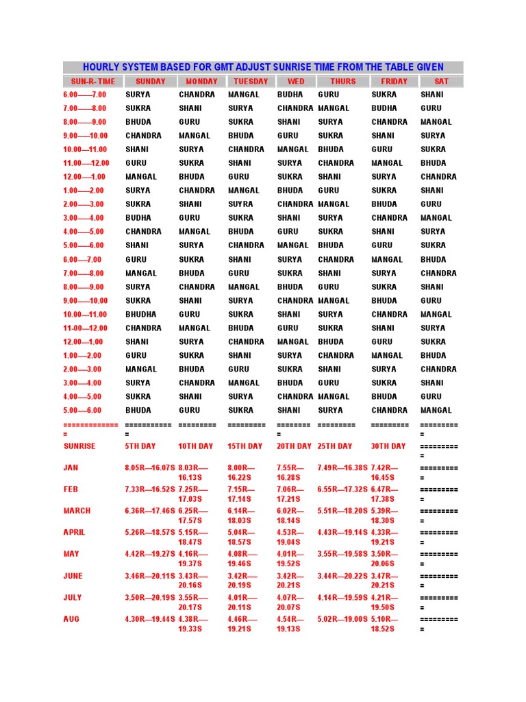 Hora - Hora in Astrology | Hora Names, Significance - Astroswamig The value of a hora is one hour. That is, there are a total of 24 Horas in 24 hours of Ahoratra that is day and night. A hora is 15 degrees i.e. the value of a Rashi is 30 degrees. This is how there are two horas under one Rashi or horoscope. Hora can tell us about the wealth of a man. The first hora of each day or war begins at sunrise. Hora (D2) chart analysis for wealth and money in vedic astrology ... Hora (D2) chart - this analysis gives us clarity to identify the planets in horoscope that support income generation, wealth and asset building. Dhana yogas (wealth combinations) and their strength in the chart - this step gives us a definite understanding of the kind of income levels the person will actually earn and will he/she be able to convert those earnings to assets. Today Hora Timings, Day Night Horai Calculater - Astroyogi Horas are used to plan an auspicious event, to have its maximum impact on one's life and to avoid disadvantageous times for bad results. Hora charts are created when predictions are made at the time of birth of an infant or for fixing a time to undertake an auspicious event. Hora charts help to identify the strong and weak areas of one's life. Hora Vedic Astrology by Steve for Birth Chart Wealth Predictions In Vedic astrology, an expert astrologer, is known as Jyotish, uses a variety of divisional birth charts to do detailed reading of a chart. For example : Hora is a divisional chart for predicting wealth from the birth chart. 7th house is used to forecast relationships in Matrimony Matching and also for love compatibility. 27 nakshatras are used ...