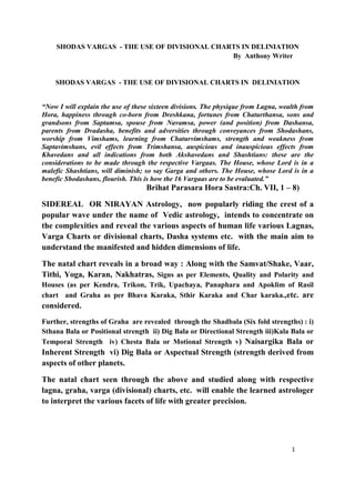 Unlocking the Vargas of Vedic Astrology The Divisional Charts of your horoscope reveal how each planet prismatically reflects through all the important areas of your life. The birth chart (varga #1), ...