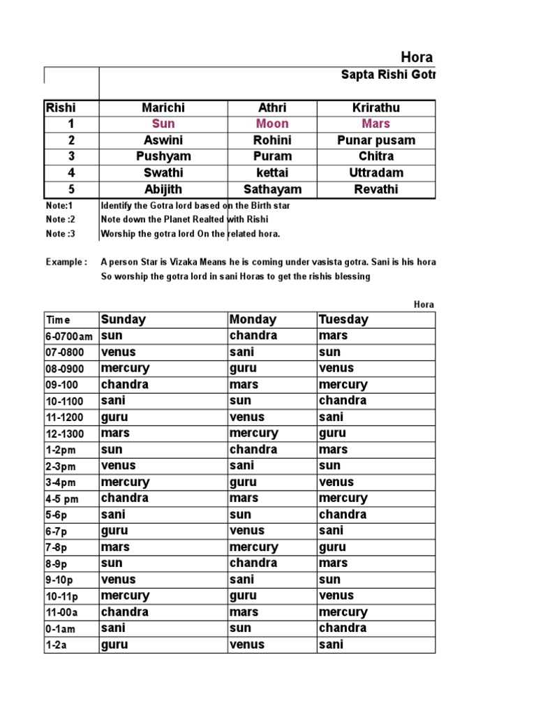 Gotra Based On Birth Star | PDF | Planets In Astrology - Scribd Note:1 Identify the Gotra lord based on the Birth star Note :2 Note down the Planet Realted with Rishi Note :3 Worship the gotra lord On the related hora. Example : A person Star is Vizaka Means he is coming under vasista gotra. Sani is his hora lord. So worship the gotra lord in sani Horas to get the rishis blessing Hora table